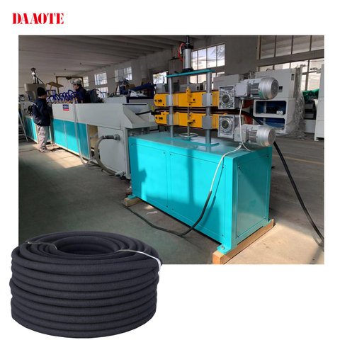 เครื่องอัดรีดท่อยางแช่ยางแบบยืดหยุ่นสีดําที่มีรูพรุนรั่วชลประทานสายการผลิตการอัดรีดท่อประหยัดน้ํา